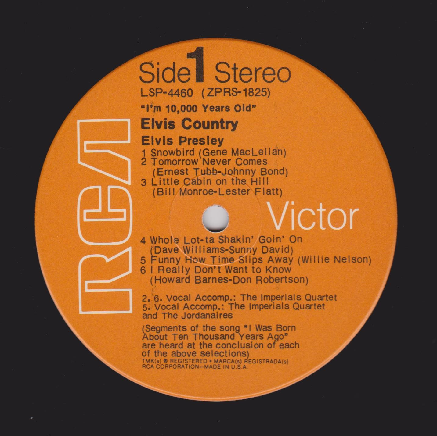 Elvis Country (I'm 10,000 Years Old) is the thirteenth studio album by American singer and musician Elvis Presley, released on RCA Records (LSP 4460) in January 1971. Recorded at RCA Studio B in Nashville, it reached number 12 on the Billboard 200. It peaked at number six in the United Kingdom, selling over one million copies worldwide. It was certified Gold on December 1, 1977, by the Recording Industry Association of America.