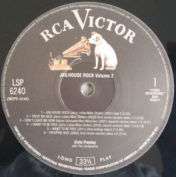 JAILHOUSE ROCK - VOLUME 2 Side A: Jailhouse Rock (Take 6)/ Treat Me Nice (First Movie Version, Take 1 - 3)/ Don’t Leave Me Now (Second Version, Take 1 - 6)/ I Want To Be Free (Record Version, Take 1 - 8)/ I Want To Be Free (First Ending, Take 1 & 2)/ Treat Me Nice (First Movie Version, Take 4 & 5) Side B: (You’re So Square) Baby I Don’t Care (Take 1)/ (You’re So Square) Baby I Don’t Care (Take 2 - 4)/ Don’t Leave Me Now (Second Version, Take 9 & 10)/ Young And Beautiful (Florita Club Version, Take 1)/ Young And Beautiful (Florita Club Version, Take 2)/ Treat Me Nice (First Movie Version, Take 6 - 7)/ Young And Beautiful (Jail Version, Take 1)/ Young And Beautiful (Jail Version, Take 3)/ Treat Me Nice (First Movie Version, Take 8 & 9) Side C: Treat Me Nice (First Movie Version, Take 14 & 15)/ Jailhouse Rock (Take 1 - 4)/ Don’t Leave Me Now (First Version, Take 2)/ Young And Beautiful (Florita Club Version, Take 5 & 6)/ Treat Me Nice (First Movie Version, Take 10 - 13)/ Don’t Leave Me Now (Second Version, Take 11 - 13) Side D: Treat Me Nice (First Movie Version, Take 16 & 19)/ I Want To Be Free (Record Version, Take 10 & 11)/ I Want To Be Free (Second ending, Take 1 - 5)/ Jailhouse Rock (Take 7 & 8 )/ Jailhouse Rock (Ending, Take 1 & 2)/ Young And Beautiful (Florita Club Version, Take 7) Released: September 2018 Cat.-No.: LPM-6240 Format: 12'' / 33 ? rpm (2 Record Set) |