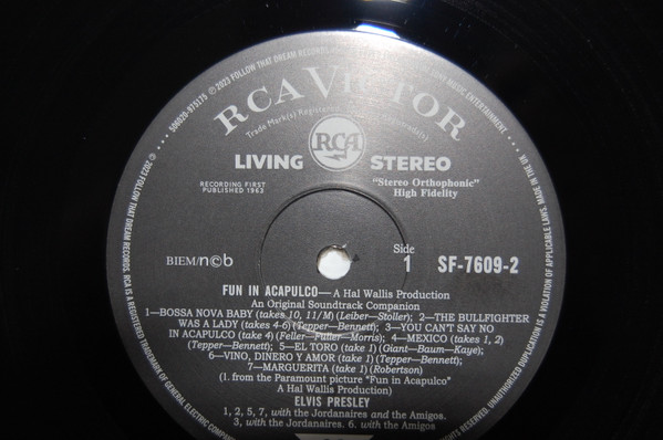 FUN IN ACAPULCO Side A: Bossa Nova Baby (Take 10/M)/ The Bullfighter Was A Lady (Take 4 - 6)/ You Can't Say No In Acapulco (Take 4)/ Mexico (Take 1 & 2)/ El Toro (Take 1)/ Vino, Dinero Y Amor (Take 1)/ Marguerita (Take 1) Side B: Fun In Acapulco (Take 1/M)/ Bossa Nova Baby (Take 1 & 2)/ I Think I'm Gonna Like It Here (Take 1)/ (There's) No Room To Rhumba In A Sports Car (Take 1/M)/ Mexico (Take 6)/ The Bullfighter Was A Lady (Take 11 - 14 - Movie Version)/ Guadalajara (Vocal Overdub Take 3 & 4) Side C: You Can't Say No In Acapulco (Take 5/M)/ Vino, Dinero Y Amor (The Amigos - Café Version -Take 1)/ I Think I'm Gonna Like It Here (Take 8 & 9)/ Marguerita (Take 5 & 6)/ Bossa Nova Baby (Take 3)/ Bossa Nova Baby (Take 4 & 5)/ Bossa Nova Baby (Take 6) Side D: Mexico (Take 7)/ The Bullfighter Was A Lady (Take 17/M - Movie Version)/ Vino, Dinero Y Amor (Take 2 & 3)/ I Think I'm Gonna Like It Here (Spliced Take 18 & 19 Master - Movie Version)/ Bossa Nova Baby (Take 7 & 8)/ Witchcraft (Take 3/M)/ Love Me Tonight (Take 6 - 8/M)/ Slowly But Surely (Take 5/M) Released: July 2023 Cat.-No.: SF-7609-2 (506020-975175) Format: 12'' / 33 ? rpm (2 Record Set) |
