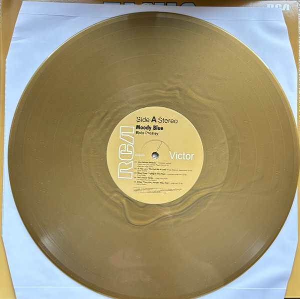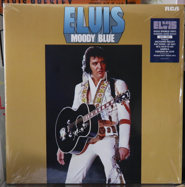 Elvis – Moody Blue Label: RCA Victor – 506020-975182, Follow That Dream Records – 506020-975182, Sony Music – 506020-975182 Format: 2 x Vinyl, LP, Compilation, Limited Edition, Numbered, Reissue, Gold Sparkle Country: Released: 2024 Side A: 01: Unchained Melody (Undubbed Version) 02: If You Love Me (Let Me Know) 03: Blue Eyes Crying In The Rain (Unedited Version) 04: He'll Have To Go (Rough Mix) 05: Bitter They Are, Harder They Fall (Rough Mix) Side B: 01: She Thinks I Still Care (Take 10) 02: Moody Blue (Take 1) 03: Pledging My Love (Takes 1,2 ) 04: It's Easy For You (Undubbed Master) 05: Softly As I Leave You Side C: 01: Way Down (Rough Mix Of Master) 02: She Thinks I Still Care (Take 2b) 03: Moody Blue (Master) 04: Pledging My Love (Master) 05: Let Me Be There 06: America Side D: 01: Unchained Melody (Undubbed Version) 02: Little Darlin' 03: She Thinks I Still Care (Take 15) 04: Moody Blue (Unedited Rough Mix Of Master) 05: My Way (Live) Phonographic Copyright ? – Follow That Dream Records Copyright © – Follow That Dream Records Licensed From – Sony Music EntertainmentLimited edition on gold sparkle vinyl 4000 numbered copiesBarcode (Scanned): 5060209751825 Barcode (Printed): 5 060209 751825 Matrix / Runout (etching runout A): 506020-975083 A-1 Matrix / Runout (etching runout B): 506020-975083 B-1 Matrix / Runout (etching runout C): 506020-975083 C-1 Matrix / Runout (etching runout D): 506020-975083 D-1 Rights Society: N?B |