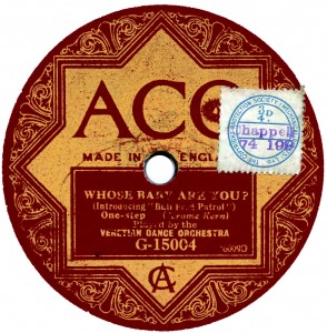 some early electrics have matrices in an E-2000 range. All English dance records are by studio bands led by Wag Abbey, though the electrics are actually French bands (despite having English matrix numbers); American ones include the usual Sam Lanin, Lou Gold, Ben Selvin etc. There was quite a lot of interesting Jazz issued, such as The Red Heads and The Original Memphis Five.Columbia bought the English branch of Pathe in December 1928; it is conceivable there may be some late Actuelles pressed by Columbia using their superior laminated technique. Certainly some of the last "Perfect" records (q.v.) may be found with fine laminated surfaces. |