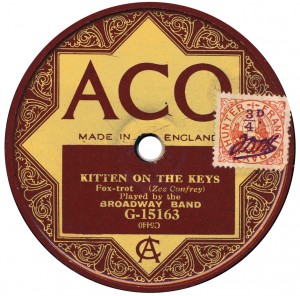 | Collectors often loosely refer to ‘Vocalion’ as an umbrella term for 3 or more different companies. Originally there was the Orchestrelle Co. Ltd., which later ‘became’ the Aeolian Co. Ltd. Its records were pressed by a subsidiary company, the Universal Music Co. Ltd. at a factory in Hayes, Middlesex. The ACO trade mark was registered to Aeolian in July 1922. The first Aco discs appeared in November 1922. Aco was in effect a ‘budget label’ to Aeolian’s high-prestige Vocalion marque. Aeolian had just bought up the Invicta Record Co. Ltd., whose label was Guardsman, and most of the first 40 or so Aco issues were derived from Guardsman masters, some of them quite old. The label continued until G-16230 in 1927, but does not turn up all that often. They also put out at least seventy-five 12" discs in a F-33000 series. These are very scarce. Just for the record, the Vocalion Gramophone Co. Ltd. was formed in December 1924, so only products after that date (they manufactured many other labels) really merit the loose term ‘Vocalion’. | ||||