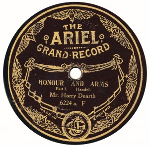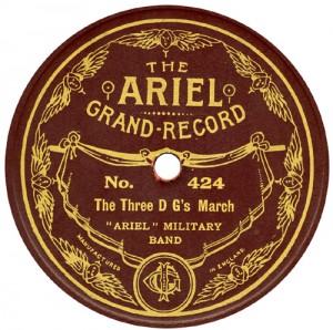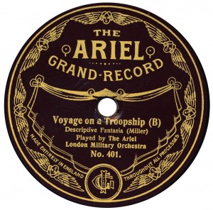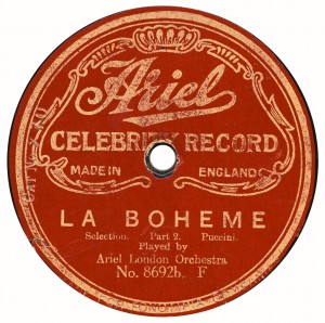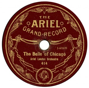 been found as Winners with Ariel paste-overs, from the early 1920s. As far as dance music is concerned, in the early 1920s, Ariel was using Zonophone masters and some sides by "Jack Hylton's Jazz Band" may be found, along with others of a similar period, with a 2000 catalogue series, often anonymous. Generally, apart from this, almost all dance records are labelled as by "Ariel Dance Orchestra".In the later 1920s, was a 1000 series, again from Zonophone issued sides by the various Bert Firman groups (see picture 1.) Overlapping with this, Ariel used masters from Parlophone from about 1924 until 1938, using a 4000 series Catalogue number, later prefixed with a "Z". This included many American masters from OKeh records. Although Ariel has not been entirely catalogued, I have not found any using masters not already issued on Parlophone, though it is possible, especially as Parlophone did not use all the masters sent to them by OKeh.The label design changed little over the years as can be seen by the pictures here. There were also Classical series of "Ariel Celebrity Records" in a 10¾" size. The blue example shown here, is a rare "paste-over" Ariel of a different colour. This one was pasted over a Bell or Winner.Finally, the Ariel Concert is a 12" issue. |