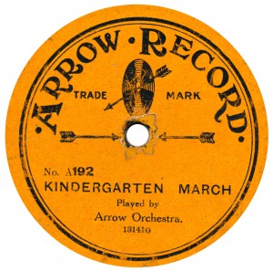 | An early British label pressed by the Carl Lindström group using Beka masters (often of an earlier vintage), Arrow existed from 1913 up to about 1916. It was a cheap line costing 1/1 or 1/- from The Scala Record company, introduced as a result of the Cinch and Phoenix records costing 1/1 produced by the Gramophone Company & Columbia, which themselves were a response to Lindström's Scala and Coliseum 1/6 records! The catalogue series was numbered A1 upwards to about A224. The label was either Red or Yellow. The Red labelled ones are earlier and were all manufactured in Germany. The yellow ones were made both in Germany and at Hertford, England, where Lindström had a record manufactory built in London in 1913.; some yellow labelled Arrows do not state a place of manufacture. | ||||