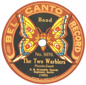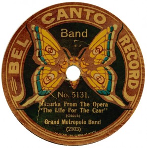 | A very attractive pre-WWI label, the company was established in Germany in 1909, but in 1911 J.G. Murdoch started importing the records into England. Bel Canto recorded their own masters, but the label, which is fairly scarce, also used other company's masters, including, apparently Dacapo and some made specifically for Murdoch. | ||||