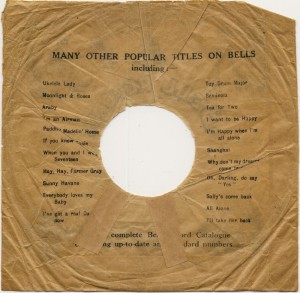 | In the 1920s, Edison Bell revived the Bell name for their 5½" (later 6") children's label. Catalogue numbers started at 250 in 1921 and the label survived until 1926 by which time the numbers had reached into the 400s. An Export series using catalogue numbers starting at 700 was also produced, with many sides specially recorded for France or Belgium. Dance band items specially recorded for the format may be found. All issues are British recordings. 6" recordings continued to be issued after this time by Edison Bell, but were issued on the Crown label. | ||||