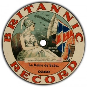 | A rare label. It is believed that the proprietor was a dealer named Lloyd Thomas. They date from about 1913 & 1914. Several sources of masters are known: Bel Canto, Invicta, ILCO and Operaphone – all German concerns. Your attention is drawn to the oddity that the face number on the label is a combination of the catalogue number with the master number embedded in it. E.g. on Beatall 451, we have cat no. 451 and master 3243 and end up with: 4532431. The source of master 3243 is not known to us; but if there was a composite number like 4551996, the 5000 series number embedded in it would almost certainly indicate a Bel Canto master. | ||||