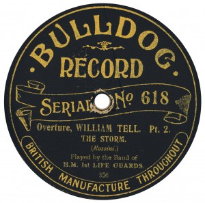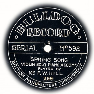 | Bosworth were music publishers. In order to promote their works, in about 1916 or 1917 they had records made for them. They were derived from the Guardsman masters of the Invicta Record Co., and were pressed by Crystalate. The label bears the slogan ‘Best Novelty Records – ask for list’. Few people can have done so, for this type of Bosworth record is incredibly rare. Whether or not the Invicta Co. recordings were custom made for Bosworth, or were simply derived from Bosworth publications already recorded by Invicta is not known. Surely the former would be more likely? This ‘Tristesse d’Amour’ was issued on Guardsman 769 as National Citizen Orchestra. Later, Bosworths had another label which acted both as a sampler for their scores, and also for ‘Library Music’. | ||||