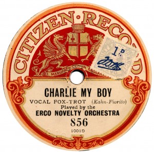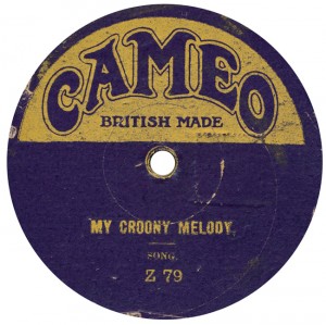 ‘song’, ’band’ &c. It was discovered that the Z- series seen above consisted only of Regals deleted in August 1918 and March 1921. Therefore there might be as many as three ‘waves’ of Cameo: the first (C- series), probably the largest one, sold by Gilberts, probably to exhaustion; then a second batch (Z-) which may or may not have gone via Gilberts, and dating perhaps to late 1918; then a final wave (Z-) in say mid-1921. The copyright stamp on the Regal can be seen under the label of Z-79. The blue-lettered ‘half label’ stuck over Regal G-7616 is from another separate venture or disposal; these were sold in Australia by an unknown vendor. |