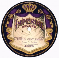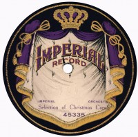 | The C.L.P.G.S. recently published No.33 in their Reference Series. This contains 36 pages of the history of the various Imperial labels, from 1907 to early 1937. It also contains a CD-ROM, which has a searchable list of the several thousand discs that appeared on these. Go to www.clpgs.org.uk/reference-series.htm to get your copy! Also see Frank Andrews: FTR 2, 2002, pp73-5, and TMR 69, 70 (1984-5). Frank’s comprehensive write-up was revised & is included in the above Reference Series booklet. These first Imperials were made by the U.S. firm Leeds & Catlin of New York, and imported to the U.K. beginning about April 1906. They were single sided. 600 issues were available by January 1907. The small (~1.5") ‘back-sticker’ is present only on some (early?) examples. This is probably because the sticker stipulates that the discs may only be used on a machine with a feed-screw – like a cylinder phonograph. This was part of a dodge to avoid infringing a U.S. patent. Surprising as it may seems to us, the fact that the sound-box playing a disc was carried across the disc by the very groove which it was tracking, was a crucial patent in the U.S. at the time. But as far as I know, it was totally irrelevant in the U.K., so eventually, no back-stickers? Imperial had some recordings, of exalted status, made for them in Europe, by Favorite. By way of contrast, in 1907 the famous Scottish baritone Ian Colquhoun went to the U.S. and recorded over 30 sides, presumably mainly for the British market. However, in 1909, after long-ongoing patent litigation, Leeds & Catlin were compelled to stop manufacturing discs. The residual stock was sold off cheaply; in this country, largely by Gamages. Single sided Imperials are quite scarce. Some of the Favorite sides were issued in the U.K. at higher prices. They had a different, black label featuring just the crown, and are excessively rare. In 1911 the trade mark was acquired by the Sound Recording Company. | ||||