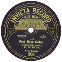 Master’s Voice’ fame. William had already been the British agent for Dacapo records, and when Dacapo opened their own direct branch in London, he looked for another line. He took on Invicta records, which were made in Germany by Berolina. Unfortunately, after only a few months, a disagreement arose, and Berolina appointed another agent, John Abrahams. Abrahams continued to sell the red white & blue German Invictas right up until August 1914, when supplies obviously ceased, at around catalogue number 380. The split occurred in mid-1913, at Cat. No. 270. Barraud believed that he had the rights to the name Invicta, and so got Invicta records pressed here. These are the ones with the blue labels. At first he went back through his original catalogue, trying to get the same artistes to record the same selections. It is important to realise then, that blue Invicta 206 above, though it carries the same titles by the same artist (Billy Whitlock) as are found on red white & blue Invicta 206, they are different recordings made many months later. These remakes all have master numbers between about 14370 and 14639. Besides this, Barraud needed new recordings. These were made in a new 100 master series. The trouble was, that he carried on with the catalogue number 271. Thus, absurdly, there were two different Invicta labels both using the same catalogue numbers – and, of course, carrying completely different artistes and repertoire! This outlandish state of affairs continued for several months, creating a nightmare for future discographers. Briefly, a court found against Barraud regarding the name Invicta, so he changed the name of his label to Guardsman, which began at 340. The red sticker above was attached to his remaining stocks of blue Invictas. |