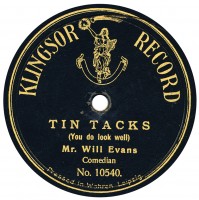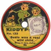 The Kiddyphone trade mark was registered in the U.K. to the German toy & novelty company Bing-Werke in April 1926. They had already been marketing toy tinplate gramophones and suitable small records in other countries, so Kiddyphone was their British line. The discs were pressed by Crystalate, either from Mimosa masters already to hand, plus others, as they were newly recorded. Three sizes are were used: 5.5", 6" and 7" (14cm, 15.25cam & 18cm). In common with most labels of this type, contemporary material was coupled with non-copyright stuff to save on royalty payments. In the above example, ‘Susie Was A Real Wild Child’ was a current popular song and so bears the (minimum) copyright payment of one halfpenny. The ‘Felix March’ is non-copyright. Had both sides paid a royalty, that would have been one penny, and since the discs were sold in 1925 for fifteen old pence (1/3d. or ~6.5p), that would represent a payment of 7.5%. Yet the required royalty was only 5% of the retail price. Very few companies were prepared to over-pay the publishers, hence the use of non-copyright material for one side. |