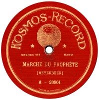 An exceptionally scarce label, Frank tells us that they were launched at the 1908 Franco-British Exhibition in London. Kosmos was a French company based at Roubaix, in the extreme north of France. Double sided, bilingual and lateral cut (vertical cut remained popular in France for many years still to come), they cannot have made much impact. Kosmophone gramophones were also on offer. A Listing contained 20 discs, all simply credited to ‘Orchestre’ / ‘Band’, so Kosmos 2300 which credits La Garde Républicaine is probably later. At the foot of the label is ‘Importé d’Allemagne’ or ‘Pressé en Allemagne’. Information found suggests that many of the masters on Kosmos were derived from the German Anker label. |