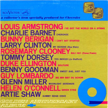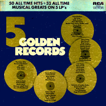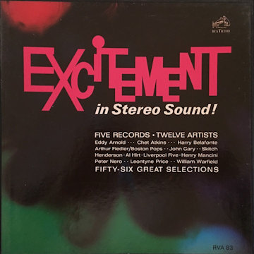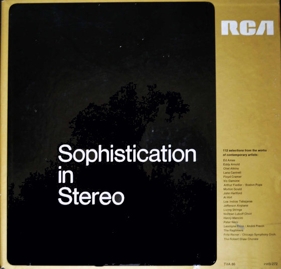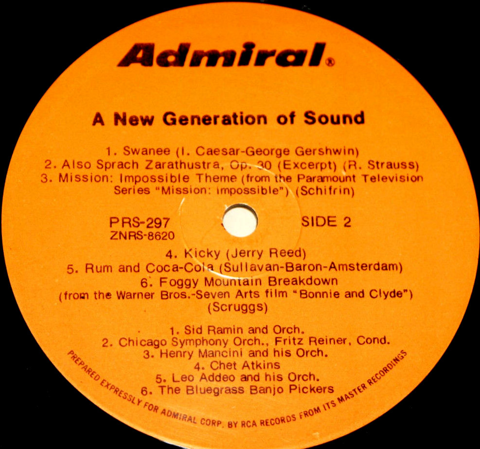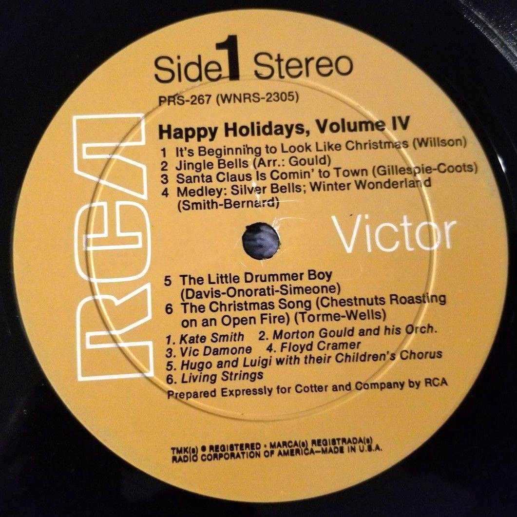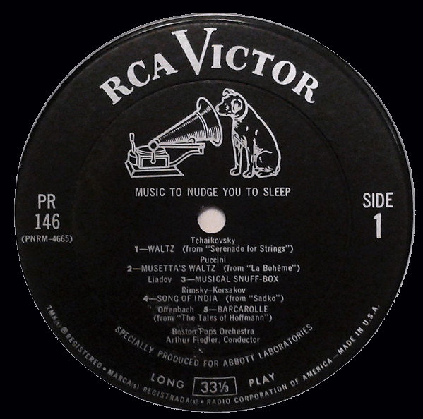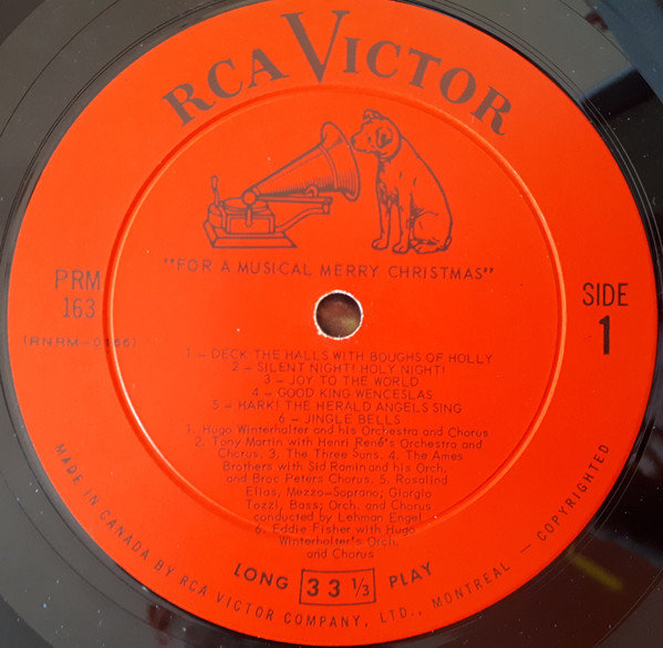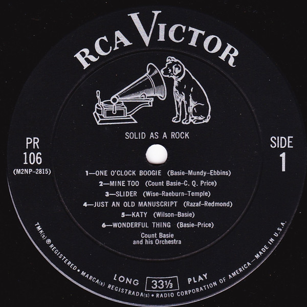 Most of the early issues in this series used a black label with silver print with an RCA Nipper logo outline at the top. Occasionally, a special label in gold, blue, or red was used, or a black label with the full color Nipper logo at the top. |