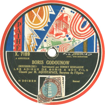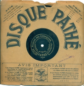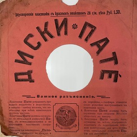 Pathe was founded by brothers Charles & Emile Pathe, who were owners of a successful bistro in Paris. About 1890 they saw an Edison phonograph demonstrated at a fair and, captivated by the device, arranged to lease one as an attraction at their bistro. The early phonograph soon brought so many curious people to the Pathe establishment that lines formed to listen to it. Some even asked about purchasing phonographs for themselves. The brothers decided that, rather than give more business to Edison, they would make their own phonographs. In 1894 they started selling their own phonographs - initially based on Edison Company design - together with blank phonograph cylinders for people to make records with. Some time later they also started marketing pre-recorded cylinder records, and by 1896 had offices and recording studios not only in Paris, but also in London, Milan, and Moscow. In 1905 they entered the growing field of disc records, at first with single-sided discs with a recording in wax on top of a cement base. In October of 1906 they started producing discs in the more usual material of shellac. Even with this less eccentric material, Pathe discs were unlike any others. The grooves were cut vertically into the discs, rather than the more common lateral method. The grooves were wider than that used by any other company, requiring a special ball-shaped .005 inch radius stylus to track them. The discs rotated at 90 rpm (and even 120 rpm), rather than 78 or 80. The recordings started on the inside near the center of the disc, spiraling out to the edge rather than vice-versa. Possibly all of this unusual technology was a preventive measure to ensure that no other record company could sue Pathe for violating their patents. Even the record sizes were unusual; other disc records came in 7 inch, 10 inch, and 12 inch sizes, while Pathe came in 21 cm, 25 cm, 27 cm, 29 cm, 35 cm, and 50 cm (roughly 8.5 inch, 10 inch, 11.75 inch, 12 inch, 14 inch, and 20 inch) sizes. Unsurprisingly, these Pathe system records could only be played on Pathe phonographs, which would usually not play other types of recordings. In 1903 Pathe opened the first small warehouse in Moscow, while in 1907 there already was a record manufacturing shop on the Bakhmietievka with 12 working presses. By 1911 the company had branches in St.-Petersburg, Rostov-on-Don, Warsaw and Odessa. |