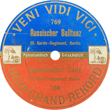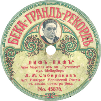 | Beka Records was a record label based in Germany, active from about 1903 to 1925. Before the Great War Beka also made gramophone records for the United Kingdom and Russian markets under the Beka-Grand-Record label. Russian repertoir of the company was vast; according to A.Zhelezny the first records were made as early as 1905 (1906 according to P.Grunberg). Beka often sold their Russian matrixes to another gramophone companies. After the Great War broke out in 1914 it stopped all operations in Russia. Eventually, the company became a subsidiary of the Carl Lindstrom A.G. group which was sold to the Columbia Graphophone Company in 1926. |