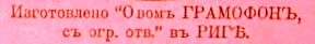 by "society GRAMOPHONE with limited responsibility" in RIGA.