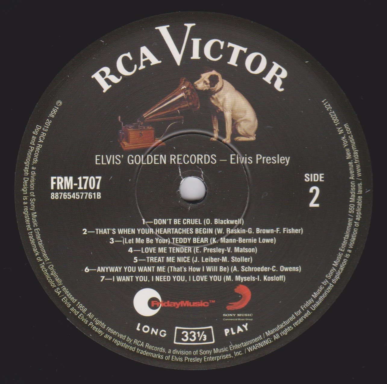 In the 1950s, a gold record awarded for a single referred to sales of one million units, different from the definition in use by the late 1970s for albums, where a gold record came to mean album sales of 500,000 units. Exact figures from the RIAA are difficult to confirm, but in the press conference from September 22, 1958, originally released on the RCA Victor EP Elvis Sails in 1958 and included on disc four of the RCA CD boxed set The King of Rock 'n' Roll: The Complete 50s Masters, the interviewer asked Presley for a tally of his gold records. Presley responded, "I have 25 million sellers, and two albums that have sold a million each."
