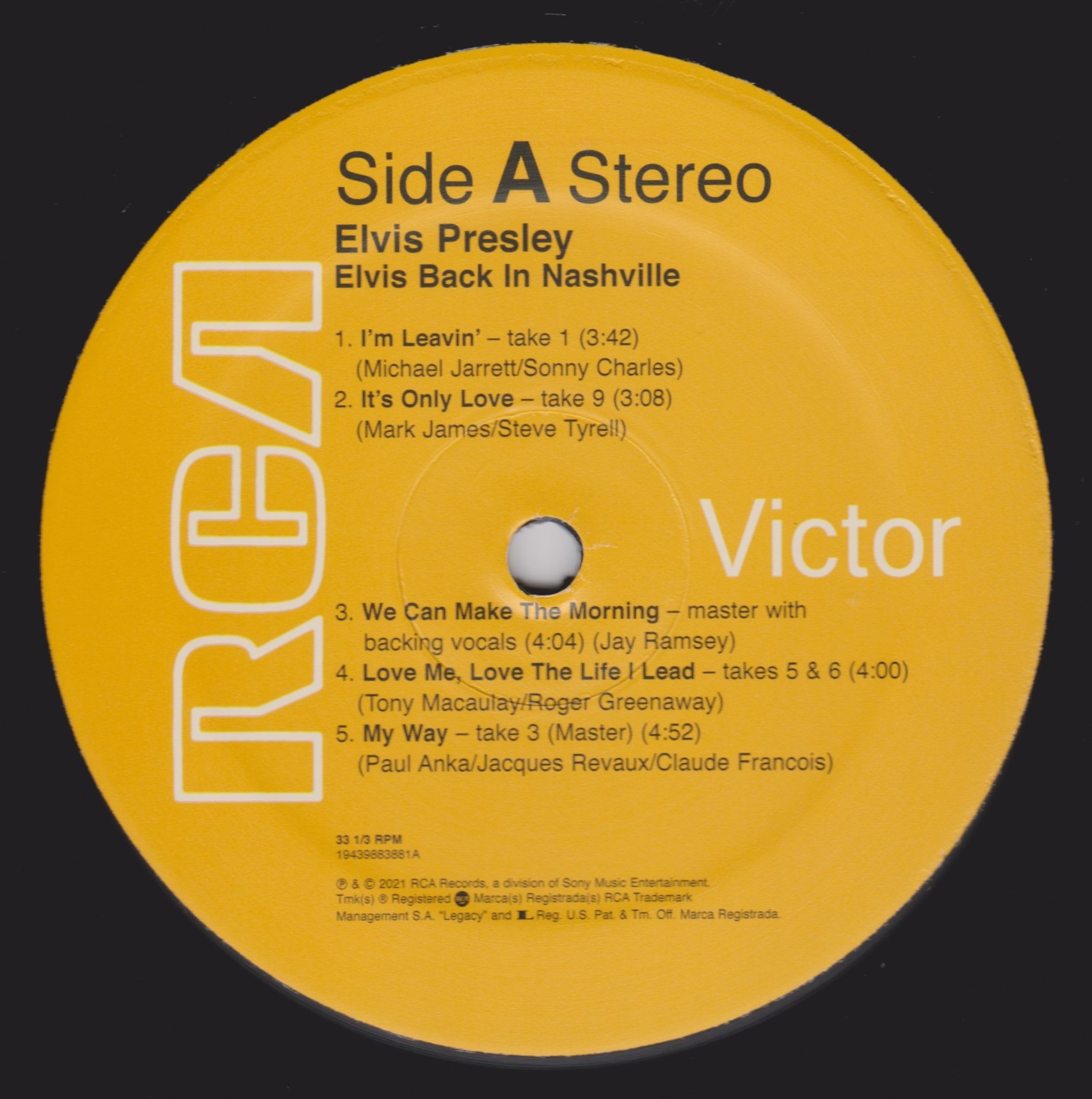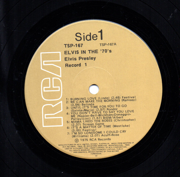 From Elvis In Memphis Label: Mobile Fidelity Sound Lab UD1S 2-017 1969