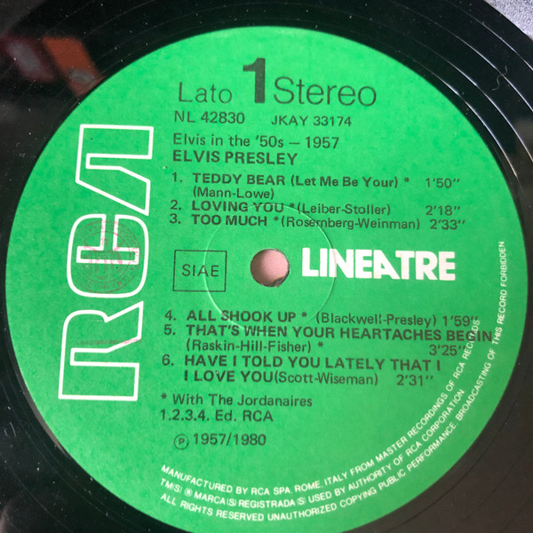 Elvis In The 50s - 1957. RCA NL 42830 Linea Tre. Vinyl. Italy 1980