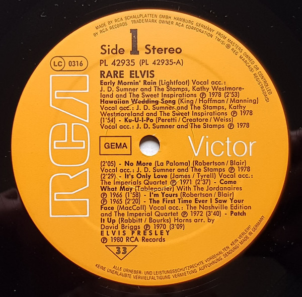 Rare Elvis. (Germany) (RCA PL-42935), (RCA Victor PL-42935) (LP)