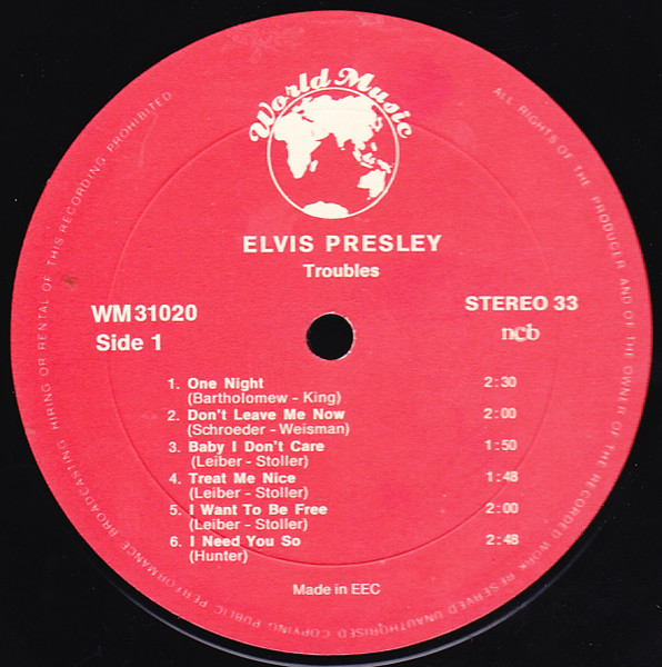 Elvis Presley Troubles. All Round Trading AR30020. Vinyl, Picture Disc.