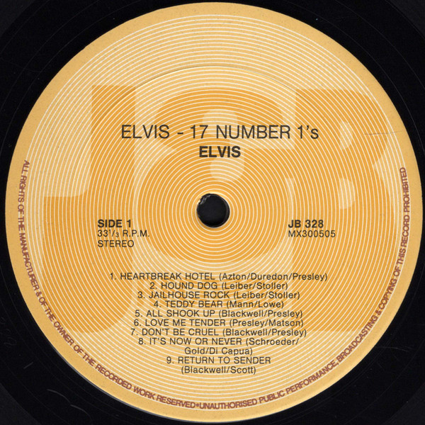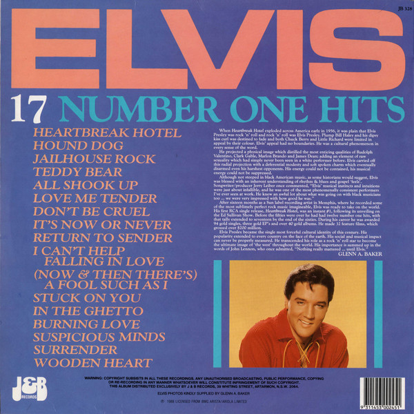 Elvis 17 Number One Hits J & B Records JB 328 Australia 1988