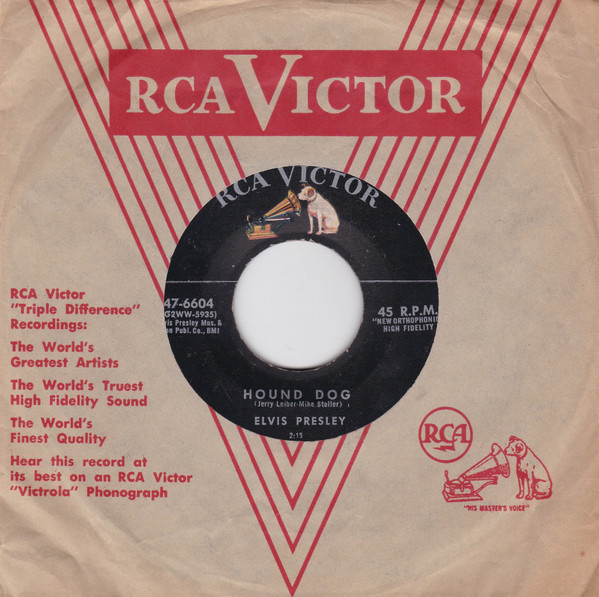 | Label: RCA Victor – 47-6643 Format: Vinyl, 7", 45 RPM, Horizontal Line Published By – Elvis Presley Music / Ross Jungnickel, Inc. Dog on top with horizontal line. |