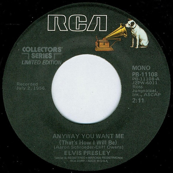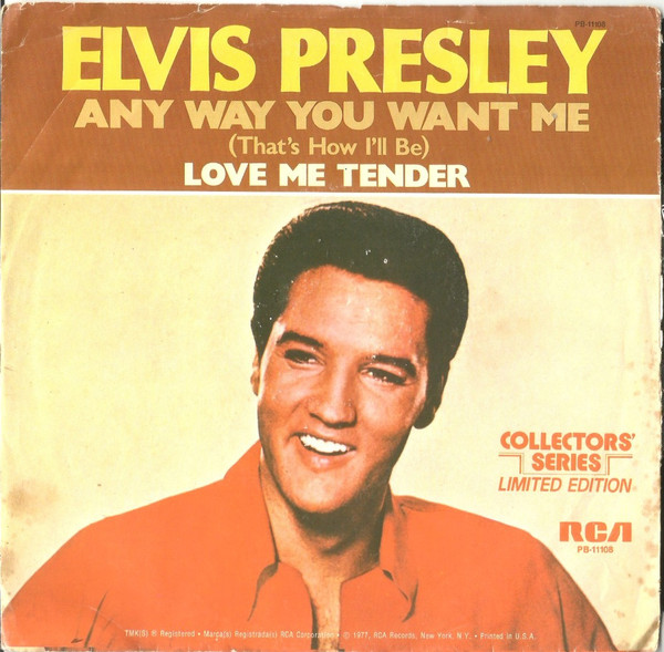 | Label: RCA – PB-11108 Series: RCA Collectors' Series Format: Vinyl, 7", 45 RPM, Limited Edition, Reissue, Mono Country: US Released: 1977 Copyright © – RCA This submission is for the 3.625" diameter labels pressing. Picture sleeve has title as "Any Way You Want Me (That's How I'll Be)" but labels have side A title as "Any Way You Want Me (That's How I Will Be)" Made and Printed In U.S.A Matrix / Runout (Label Side A): PB-11108-A |