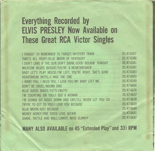 | Label: RCA Victor – 47-6643 Format: Vinyl, 7", 45 RPM, Mono, Rockaway Pressing Published By – Elvis Presley Music / Published By – Ross