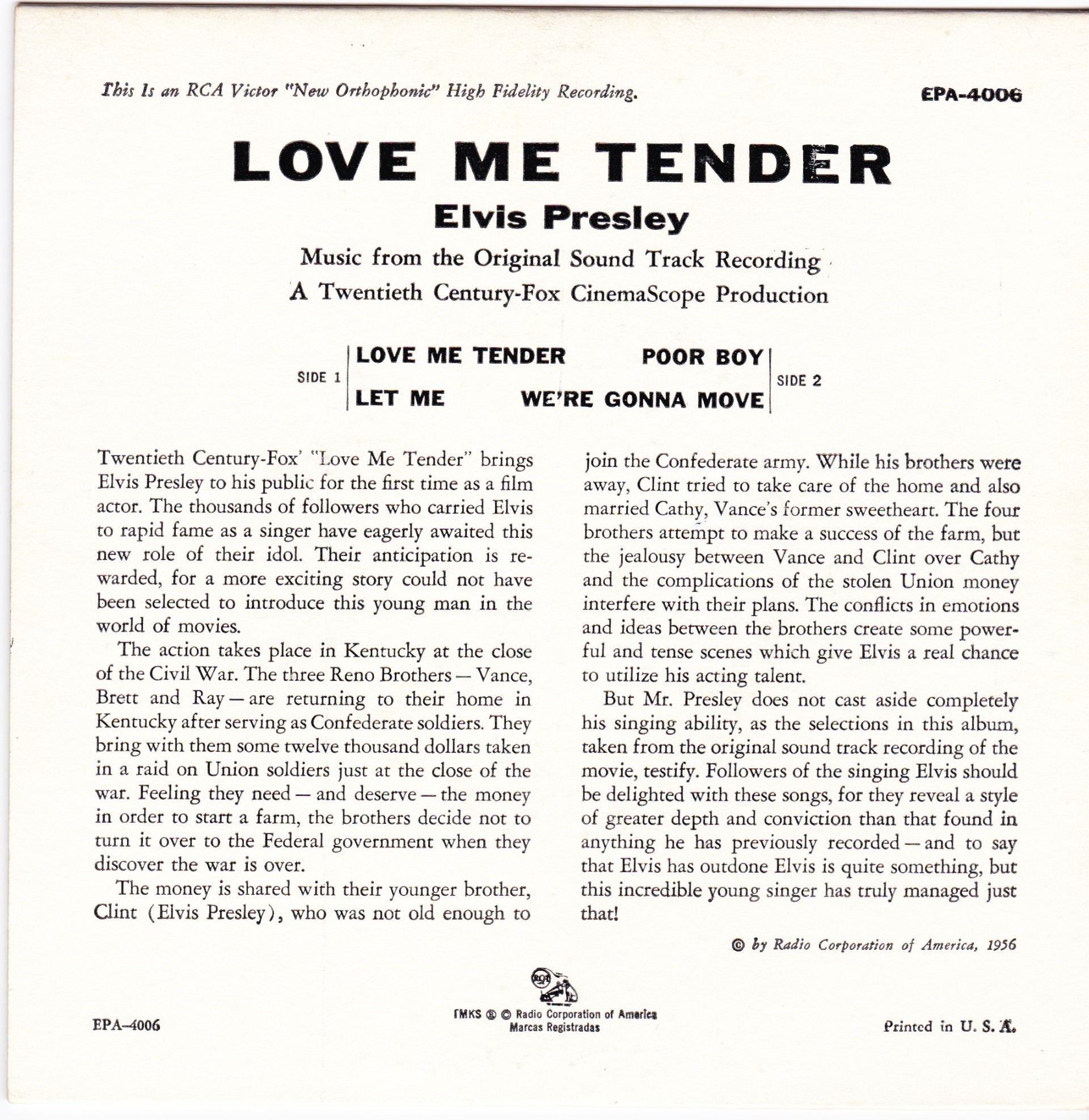 Love Me Tender ** Label: RCA Victor – 47-6643 Published By – Elvis Presley Music / Ross Jungnickel,