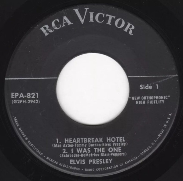 | Heartbreak Hotel Label: RCA Victor EPA-821 No dog on label Made in the U.S.A. Matrix / Runout (Label side A): G2PH-2942 |