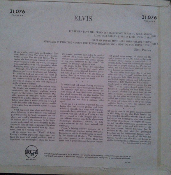 | Elvis Presley Label: RCA Victor AVL-3037, RCA