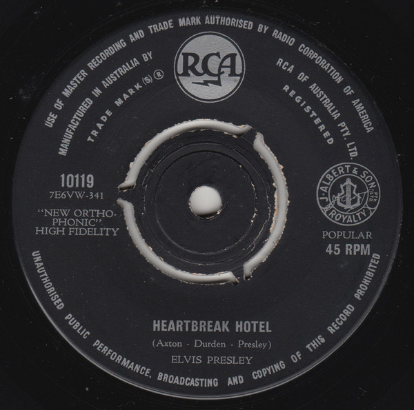 Heartbreak Hotel * Record Company Radio Corporation Of America Label variation without horizontal line. Track times displayed beneath