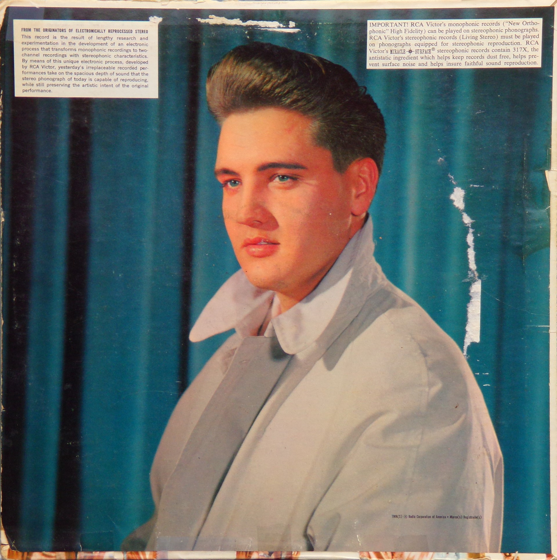| Details : 1968 Release Front Cover : Elvis in his famous gold suit. Catalogue number top right with "Magic Millions". Printed in U.S.A. bottom right. Rear Cover : Coloured photo of Elvis. Label : Black with silver lettering & dog on top. No Camden N.J. at bottom. Album title above spindle hole. Side 1 : Side 1 on inner label. Side 2 : Side 2 on inner label. Pressing Plant : Indianapolis Matrix Number Side 1 : K2PP - 2713 - 21S (Machine Stamped) Matrix Number Side 2 : K2PP - 2714 - 11S (Machine Stamped) *NOTE* 1968 release Flat label with "RE" front cover bottom right. Rear cover has text box to the top left & right. RCA logo is now white. Monaural bottom of vinyl label. |