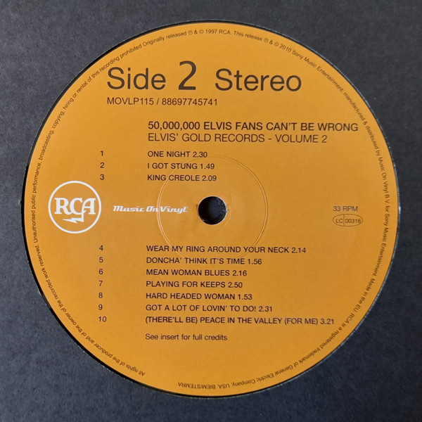 | 50,000,000 Elvis Fans Can't Be Wrong (Elvis' Gold Records, Vol. 2) Label: Music On Vinyl MOVLP115,