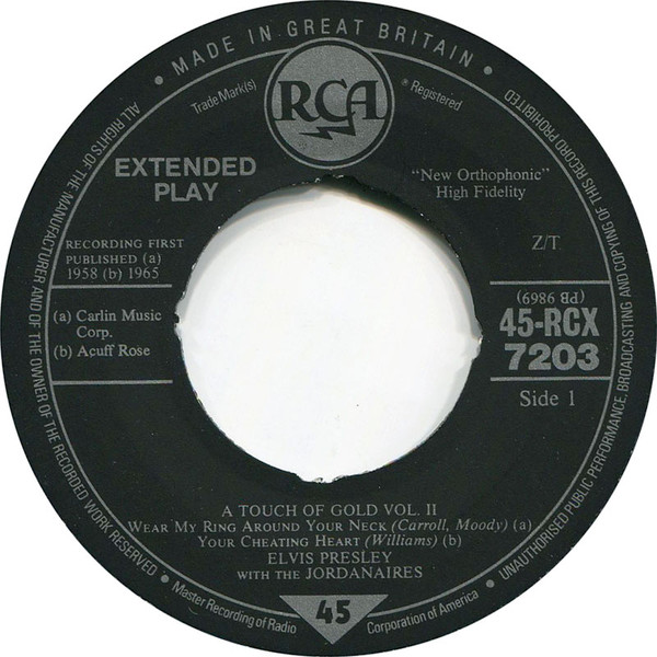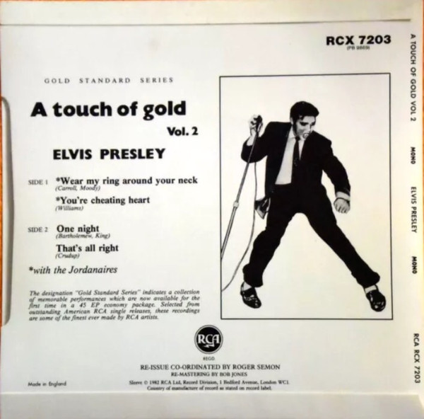 | A Touch Of Gold Vol. 2 Label: RCA RCX 7203 Series: Gold Standard Series Format: Vinyl, 7", 45 RPM, EP, Reissue Country: UK Released: 1982 This release differs from the UK original as a result of Your Cheating Heart showing as track A2. On the original UK release RCX 1048 track A2 is listed as Treat Me Nice. |