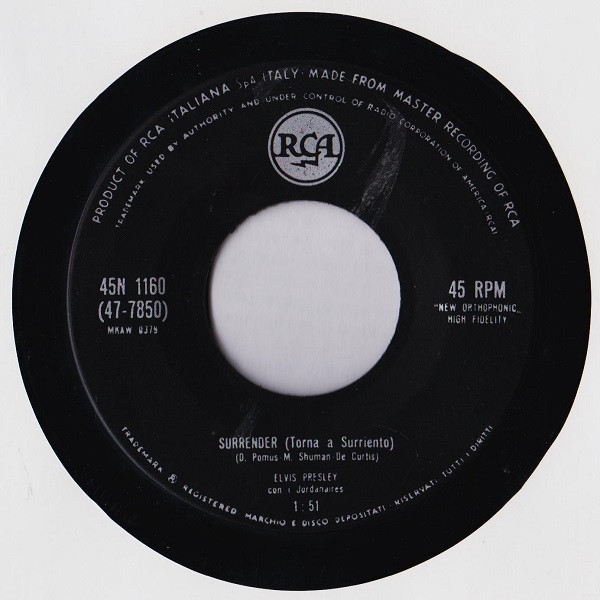 | Label: RCA – 45N 1160 (47-7850) Format: Vinyl, 7", 45 RPM Country: Italy Released: 1961 Manufactured By – RCA Italiana S.p.A. Matrix / Runout (Label side A): MKAW 0379 |