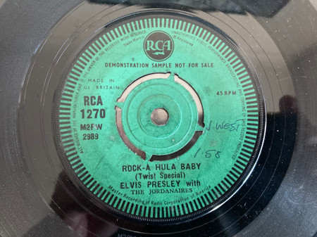 Label: RCA – 45-RCA 1270 Format: Vinyl, 7", Single, 45 RPM, Label variant, mispressing Country: UK Released: Jan 1962 Published By – Manor Music A-side text on label appears to be mispressed. Beneath the words "ELVIS PRESLEY" instead of saying "with THE JORDANAIRES" it says "Film "BLUE HAWAII")" Otherwise identical to Elvis Presley With The Jordanaires - Can't Help Falling In Love / Rock-A-Hula Baby ("Twist Special") Rights Society: BIEM NCB |