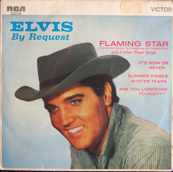 BY REQUEST - FLAMING STAR (EP) Front Cover : Title top right. Photo under title. Rear Cover : Text