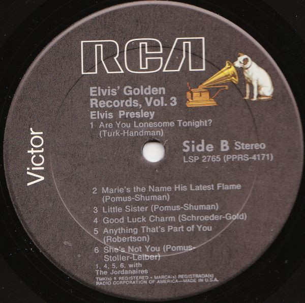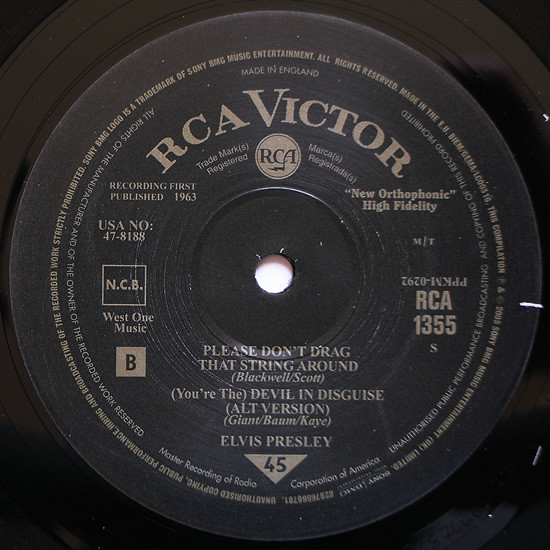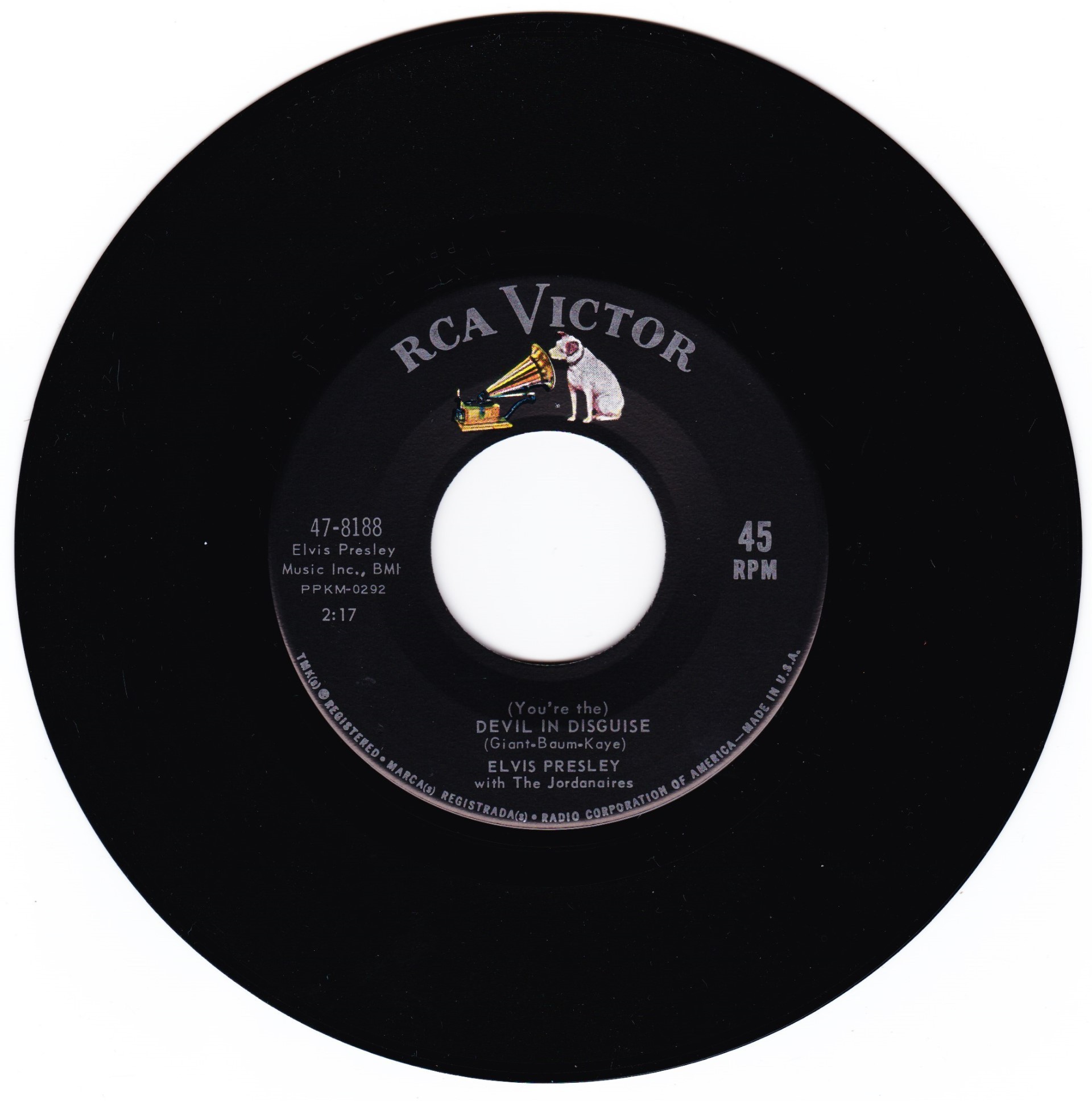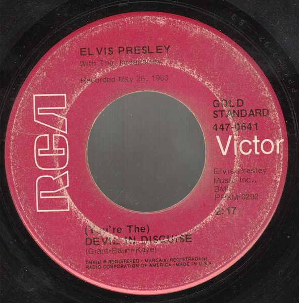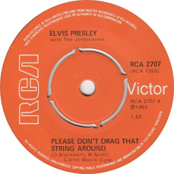 | Label: RCA Victor – RCA 2707, RCA Victor – RCA 1355 Format: Vinyl, 7", 45 RPM, Single, Reissue, 4-prong Centre Country: UK Released: May 1977 Manufactured By – RCA Ltd. Similar to Elvis Presley With The Jordanaires - (You're The) Devil In Disguise that has a solid centre and orange RCA Victor labels however, this version has a 4-prong centre, see UK release below. All runouts are etched Matrix / Runout (Label side A): RCA 2707 A |