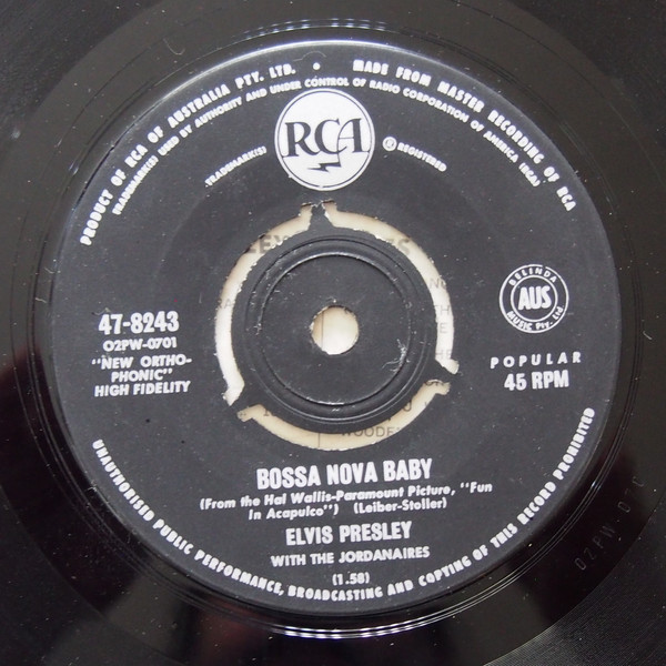 | Label: RCA Australia – 47-8243 Format: Vinyl, 7", Single, 45 RPM Country: Australia Released: 1963 Published By – J. Albert & Son Pty. Ltd. Black label with silver writing, has round tri-point push out centre. Matrix / Runout (Side A label): O2PW-0701 |