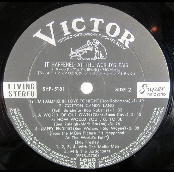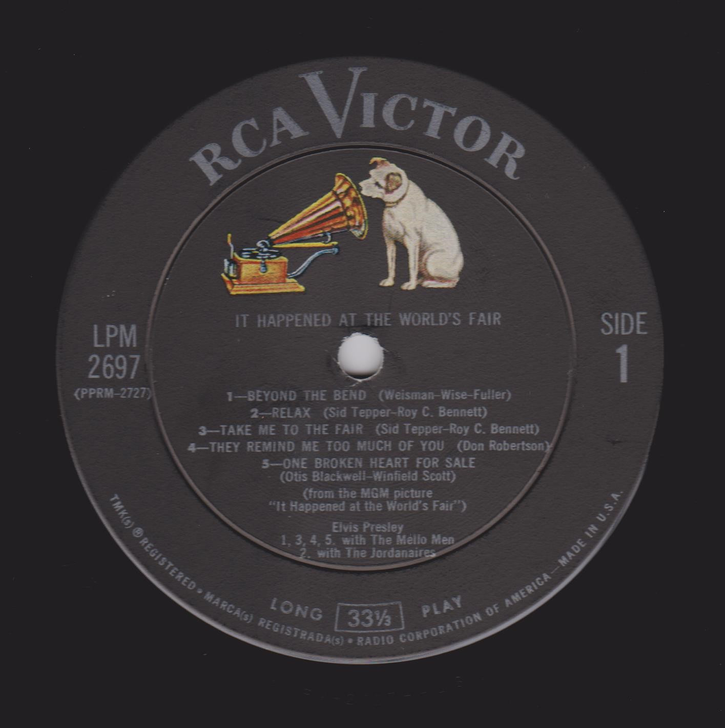HAPPENED AT THE WORLD'S FAIR (LP) (US) RCA LSP / LPM 2697 Released: April 1963 Side 1 Beyond The Bend ** Relax * Take Me To The Fair ** They Remind Me Too Much Of You One Broken Heart For Sale Side 2 I'm Falling In Love Tonight ** Cotton Candy Land ** World Of Our Own ** How Would You Like To Be ** Happy Ending * * Recorded: Radio Recorders, Hollywood,