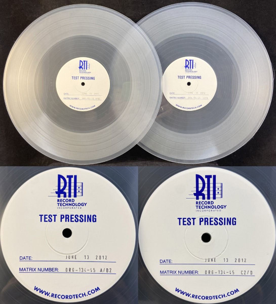 Label: Original Recordings Group – ORG 134 Format: 2 x Vinyl, 12", 45 RPM, Compilation, Reissue, Test Pressing, Stereo, Clear Country: US. Released: 13 Jun 2012 Pressed By – Record Technology Incorporated – 20545 2012 test pressing of proposed clear vinyl 2LP set which was never issued. This would have been a variant of the officially released black vinyl, numbered limited edition 2LP set issued by Original Recordings Group with the catalog number "ORG-134-45", but it only reached the test pressing stage. Generic RTI test pressing labels have date of production (June 13 2012), catalog number (ORG-134-45), and matrix suffix ("A/B2/C2/D") stamped on sides one and three. Blank labels on sides two and four. Comes in generic white covers with same info stamped at top right corners on front. Small circular "Clear Vinyl" sticker affixed to disc one cover. Matrix / Runout (Runout, Etched Side A): ORG 134-A45 -