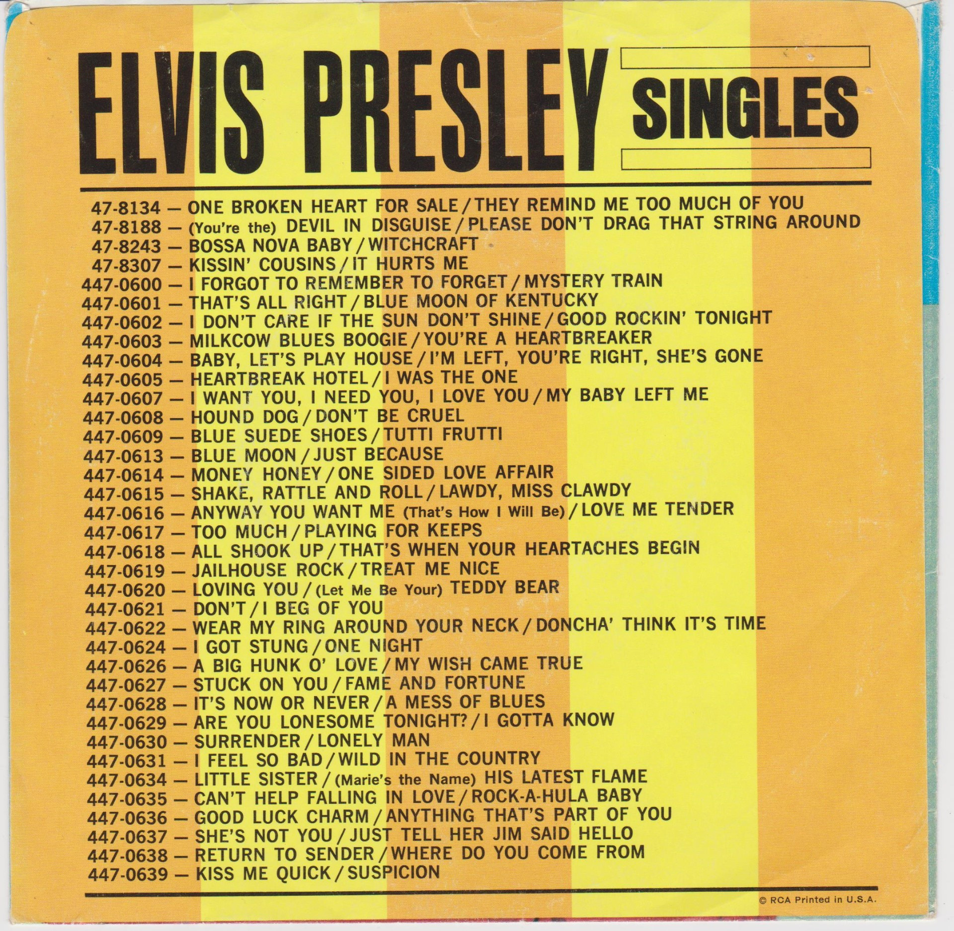 Label: RCA Victor – 447-0646 Series: Gold Standard Series Format: Vinyl, 7", 45 RPM, Single, Reissue Country: US Released: 1970 Published By – Elvis Presley Music, Inc. Reissue of RCA cat# 47-8360 Matrix / Runout (A-Side Label): RPKM-0234 |