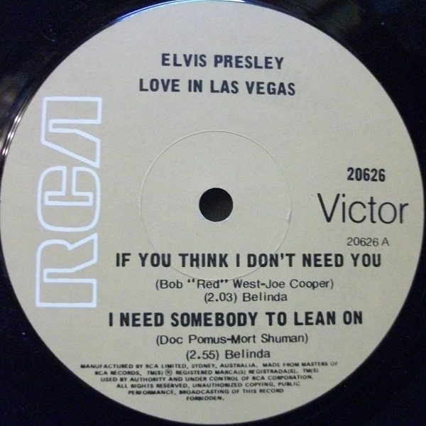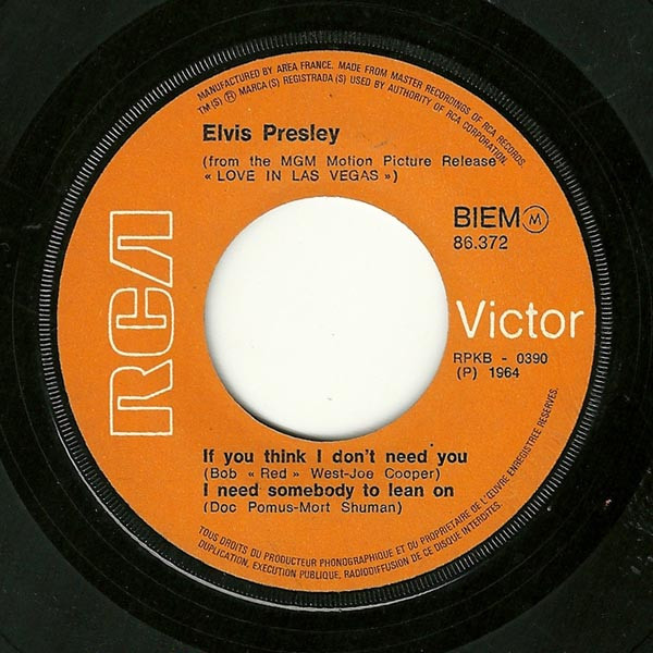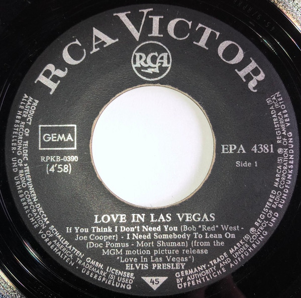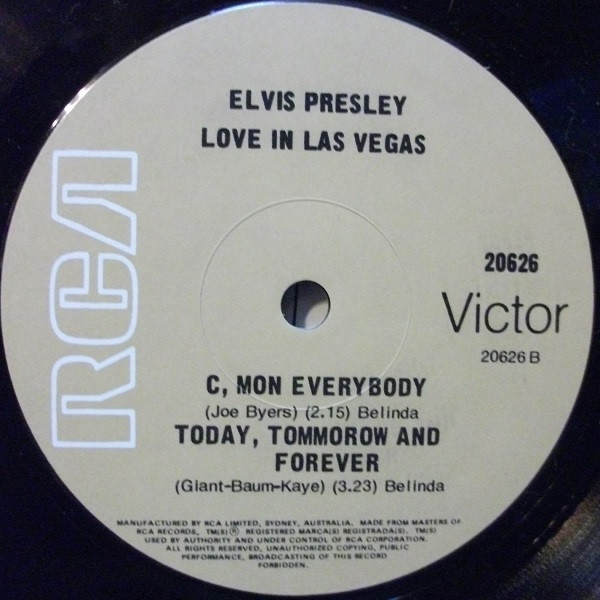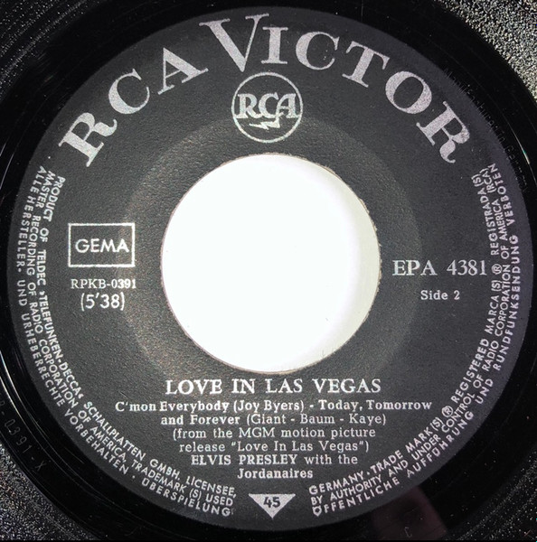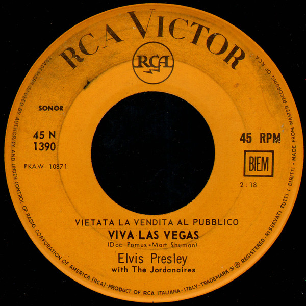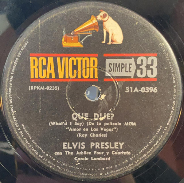 Label: RCA Victor – 31A-0396 Format: Vinyl, 7", 33 ⅓ RPM, Single Country: Argentina Record Company – RCA Victor Argentina S.A.I.C. Both sides: (from the MGM motion picture release "Amor En Las Vegas") Matrix / Runout (Side A Label): RPKM-0234 |