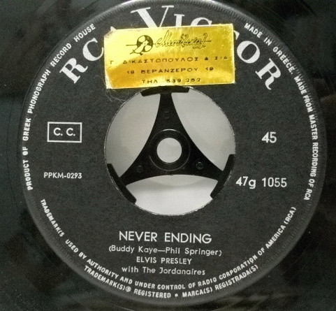 | Label: RCA Victor – 47g 1055 Format: Vinyl, 7", 45 RPM, Single Country: Greece Released: 1964 Manufactured By – Greek Phonograph Record House Made In Greece Matrix / Runout (Label side A): L2WW-0105 |