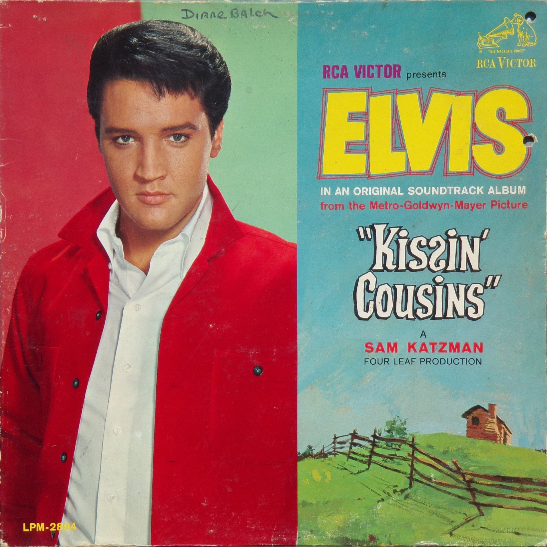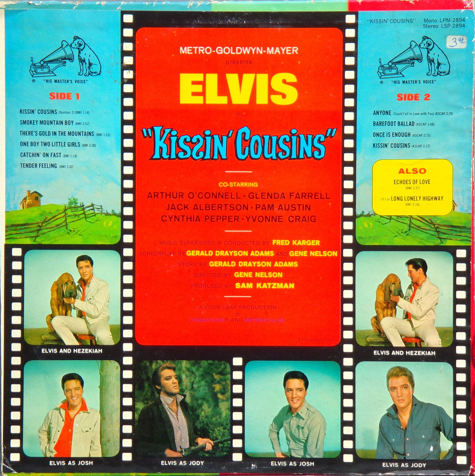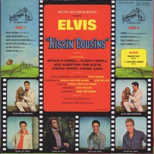 May 26, 1963 Brief History : Kissin' Cousins is the twentieth album by Elvis Presley, released on RCA Victor Records in mono and stereo, LPM/LSP 2894, in April 1964. Recording sessions took place at RCA Studio B in Nashville, Tennessee, on May 26 and 27, and September 29 and 30, 1963. These would be Presley's final recording dates before the arrival of Beatlemania. It peaked at #6 on the Billboard Top Pop Albums chart. During the same week of its release, 4 April 1964, The Beatles held twelve positions on the Billboard Hot 100 singles chart, including the top five positions. It was evident that Elvis' musical output had become stale and stagnant and directionless and the emphasis of his career was firmly committed to making musical comedy motion pictures. With the astronomical success of The Fab Four, Elvis had become, in slightly less than a decade, an icon of the past. Since the sessions for Viva Las Vegas had gone way over budget, released after but completed before Kissin' Cousins, Colonel Parker determined for fiscal prudence to have the songs recorded at Studio B, away from Hollywood and its distractions, and its platoon of available on-call musicians. Demand for songs to fill long-playing soundtrack albums, by now a regularity as the EP single was becoming less and less a viable sales item, strained the resources of the stable of Presley songwriters, with five songs alone originating from the team of Giant, Baum and Kaye. Ten soundtrack songs were knocked off by Presley with members of the Nashville A-Team during two evening sessions in September, with two distinct versions by different songwriters of the title track, one recorded in Presley's normal voice and the other with a mock-hillbilly twang. The latter version of "Kissin' Cousins" would be issued as a single in February 1964, with "It Hurts Me" on the b-side. It would peak at #12 on the Billboard Hot 100, its flipside making it independently to #29. As had happened with the previous soundtrack, two additional tracks, "Echoes of Love" and "(It's A) Long Lonely Highway" by Doc Pomus and Mort Shuman were taken from the aborted "lost" album sessions of May, 1963, and added here to bring the running order up to twelve tracks. Front Cover : Photo of Elvis. Film title on right. Catalogue