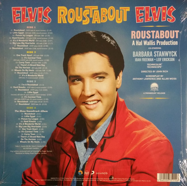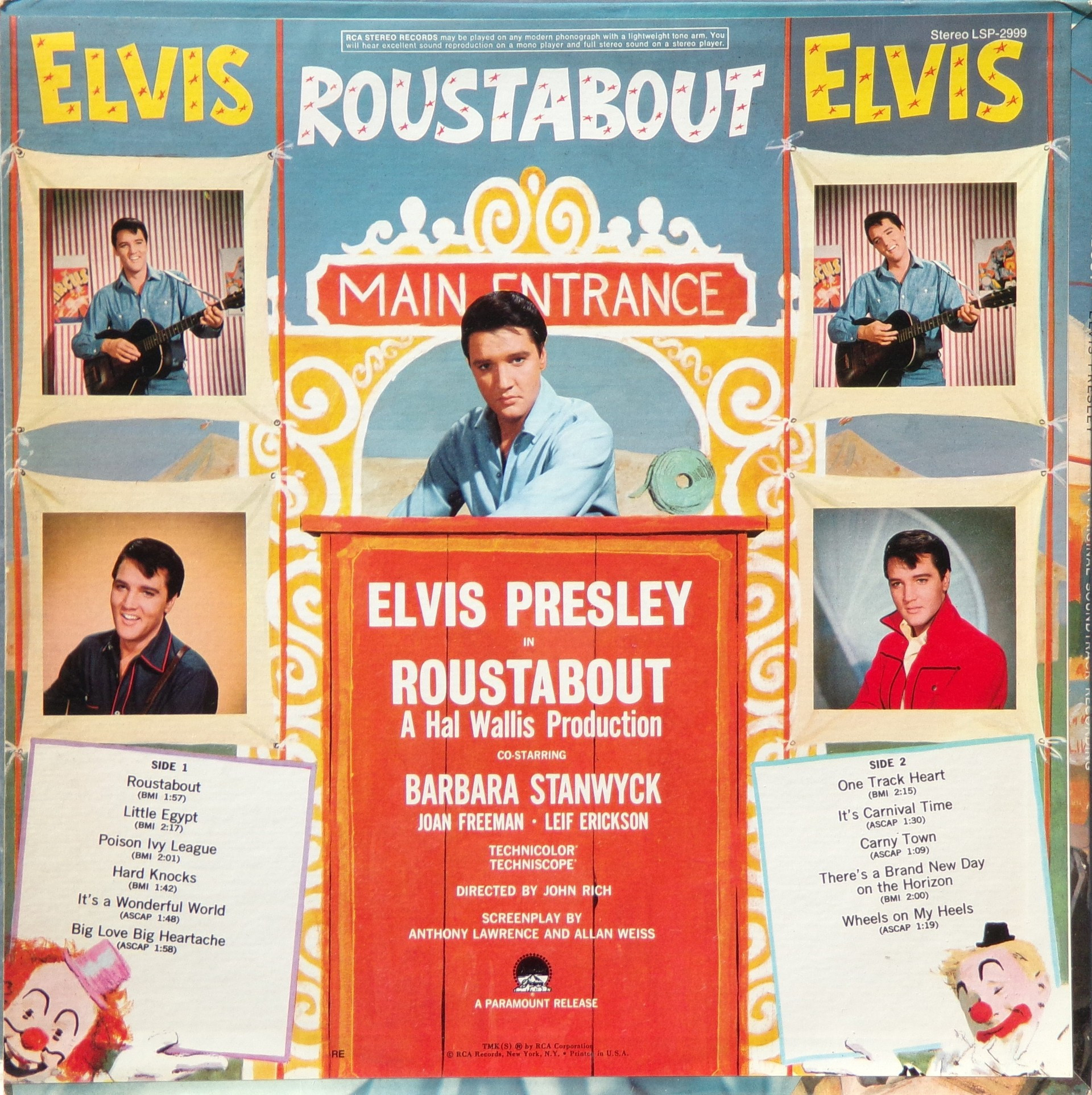 presents Roustabout (LP) Release Date: 10/1964 Disc: Blue label. From top to bottom: SP-2406 – 33 1/3 LP – PARAMOUNT PICTURES … Presents … “RUSTABOUT”