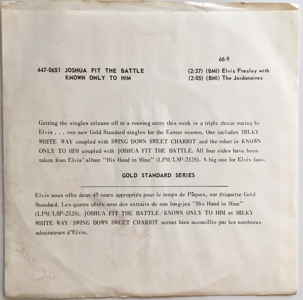 Battle Known Only To Him (US) RCA 447-0651 Released: February 15, 1966 This single was released as part of the Gold Standard Series, even though it had not been released before. |